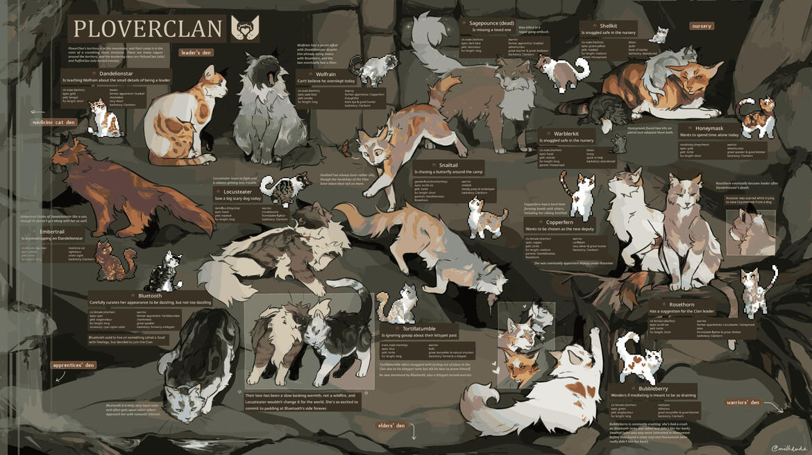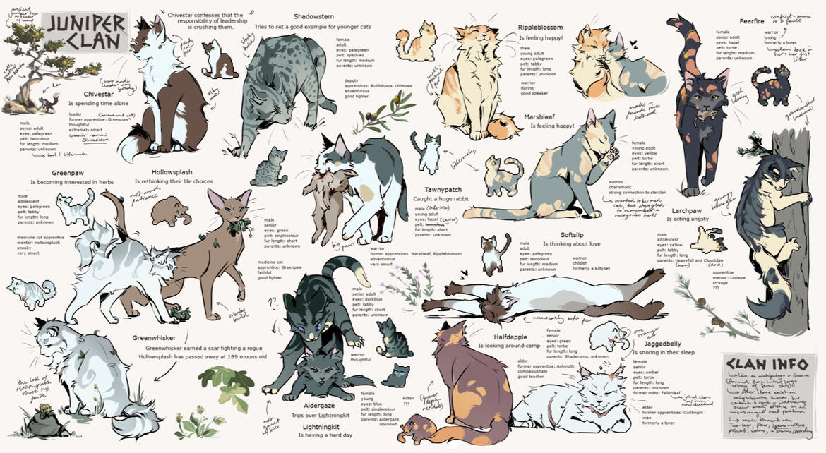 painted (not shown) β $35feline clan sheet (of flat sketches) β dm me to discuss